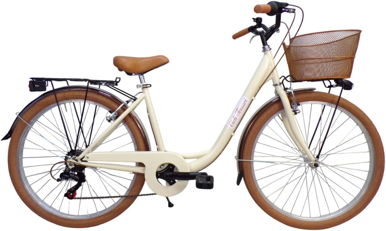 Cicli Tessari Bicicletta Donna City Bike 26 Pollici 6 Velocità Telaio Basso Modello Cigno con Accessori Completi per Uso Urbano