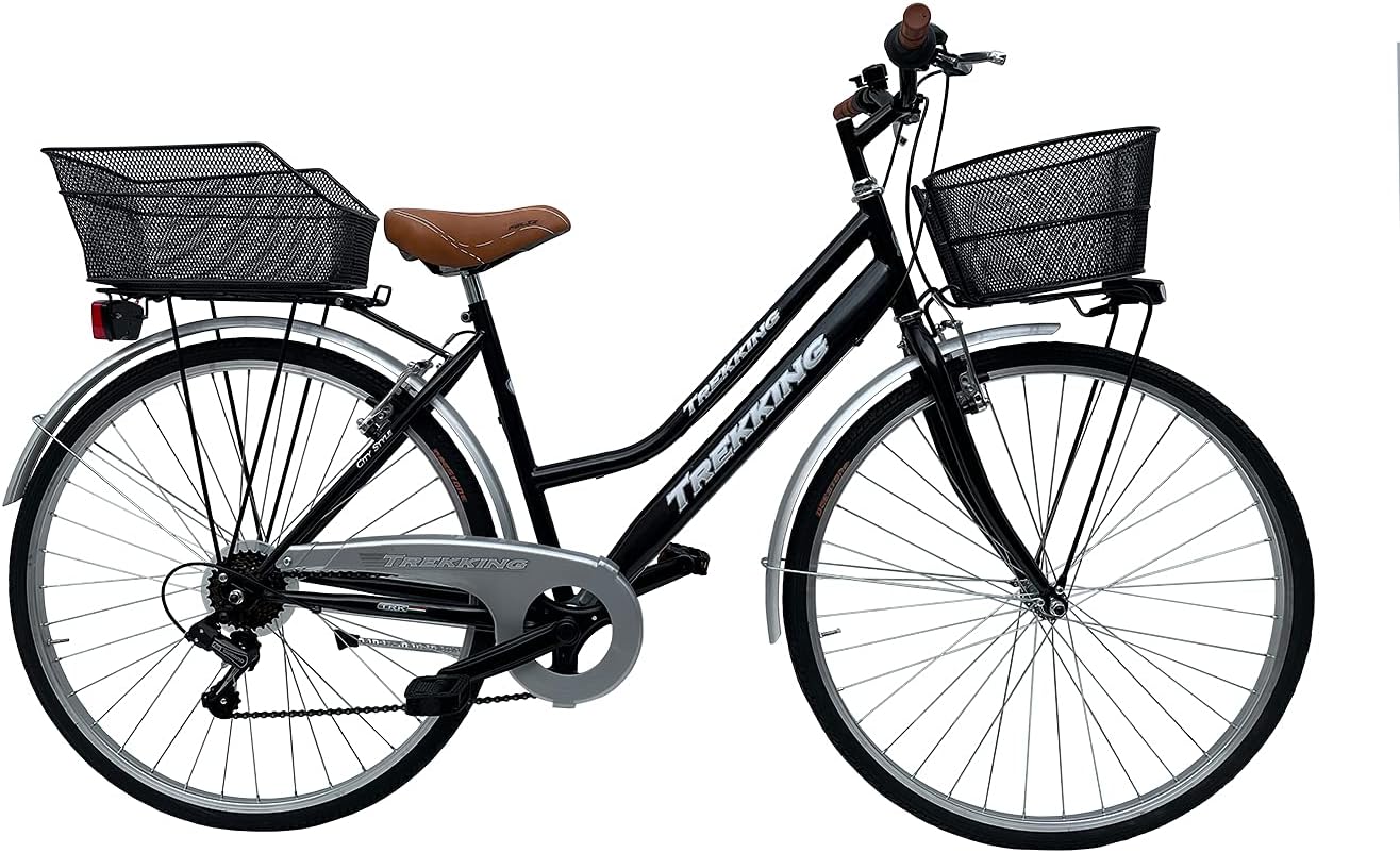 MADICKS Bicicletta Donna da Città Vintage Olanda 28 Pollici con Cestino Anteriore e Posteriore 6 Velocità Telaio in Acciaio Nero