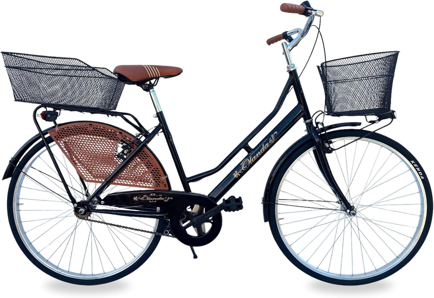 Bicicletta Donna Olanda Vintage 26 Pollici City Bike con Cestino Anteriore e Posteriore Telaio Acciaio Inossidabile Monomarcia Bicicletta da Passeggio per Città