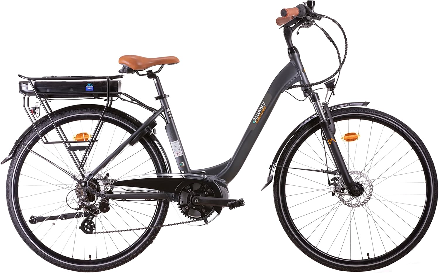 Caratteristiche principali Bicicletta elettrica Discovery da uomo con ruote da 28 pollici e cambio a 8 velocità ideale per spostamenti urbani Design e materiali Telaio in lega di acciaio robusto progettato per durata e stabilità durante la guida Sospensioni e comfort Sospensione anteriore per assorbire le vibrazioni e migliorare il comfort su strade irregolari Sicurezza Dotata di catarifrangenti per aumentare la visibilità durante la guida urbana Utilizzo Perfetta per commuting urbano, tragitti quotidiani e mobilità sostenibile